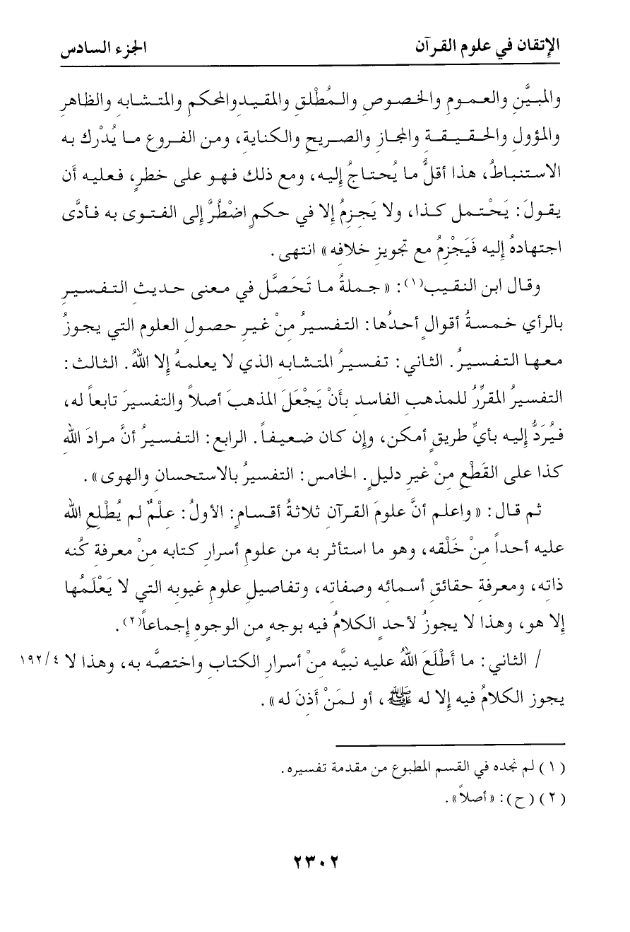 كتاب الإتقان في علوم القرآن (ط مجمع الملك فهد) (اسم الجزء: 6)