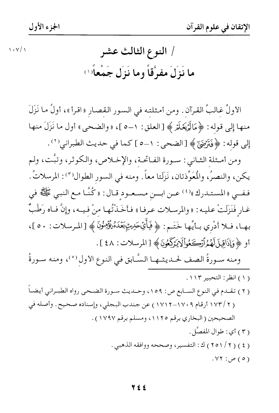 النوع الثالث عشر ما نزل مفرقا وما نزل جمعا