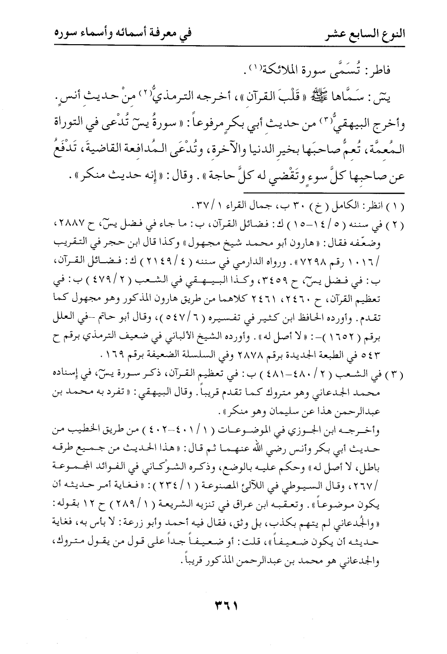 699 وأخرج البيهقي من حديث أبي بكر مرفوعا سورة يس تدعى في التوراة المعمة نعم بخيري الدنيا والآخرة وتدعى الدافعة والقاضية تدفع عن صاحبها كل سوء وتقضي له كل حاجة وقال إنه حديث منكر