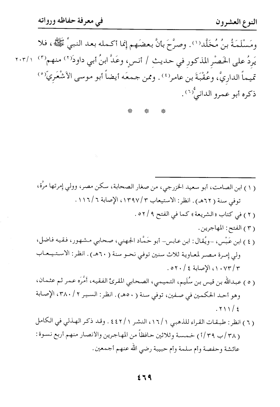 ومسلمة بن مخلد وصرح بأن بعضهم إنما أكمله بعد النبي صلى الله عليه وسلم فلا يرد على الحصر المذكور في حديث أنس وعد ابن أبي داود منهم تميما الداري وعقبة بن عامر