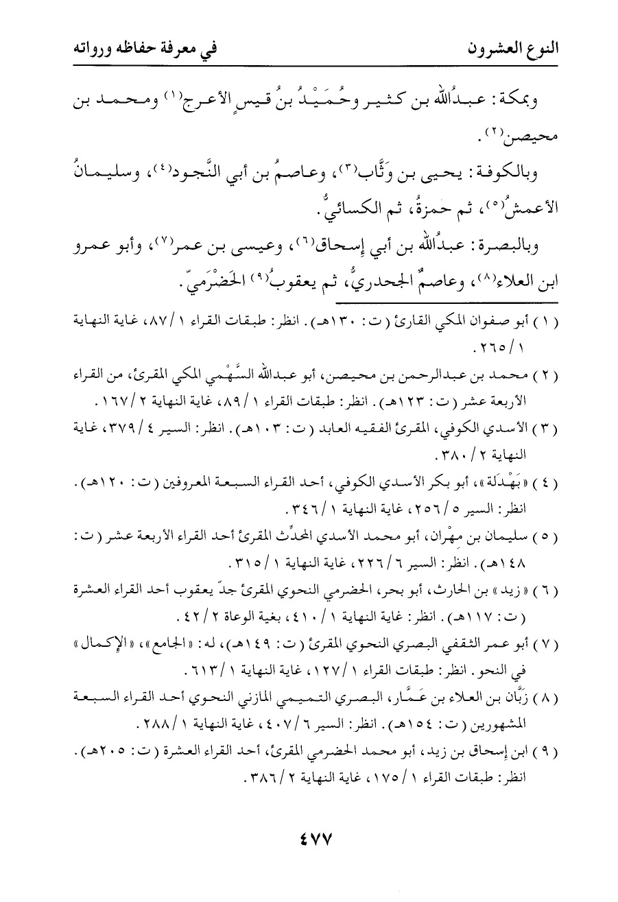 1003 وبالكوفة يحيى بن وثاب وعاصم بن أبي النجود وسليمان الأعمش ثم حمزة ثم الكسائي