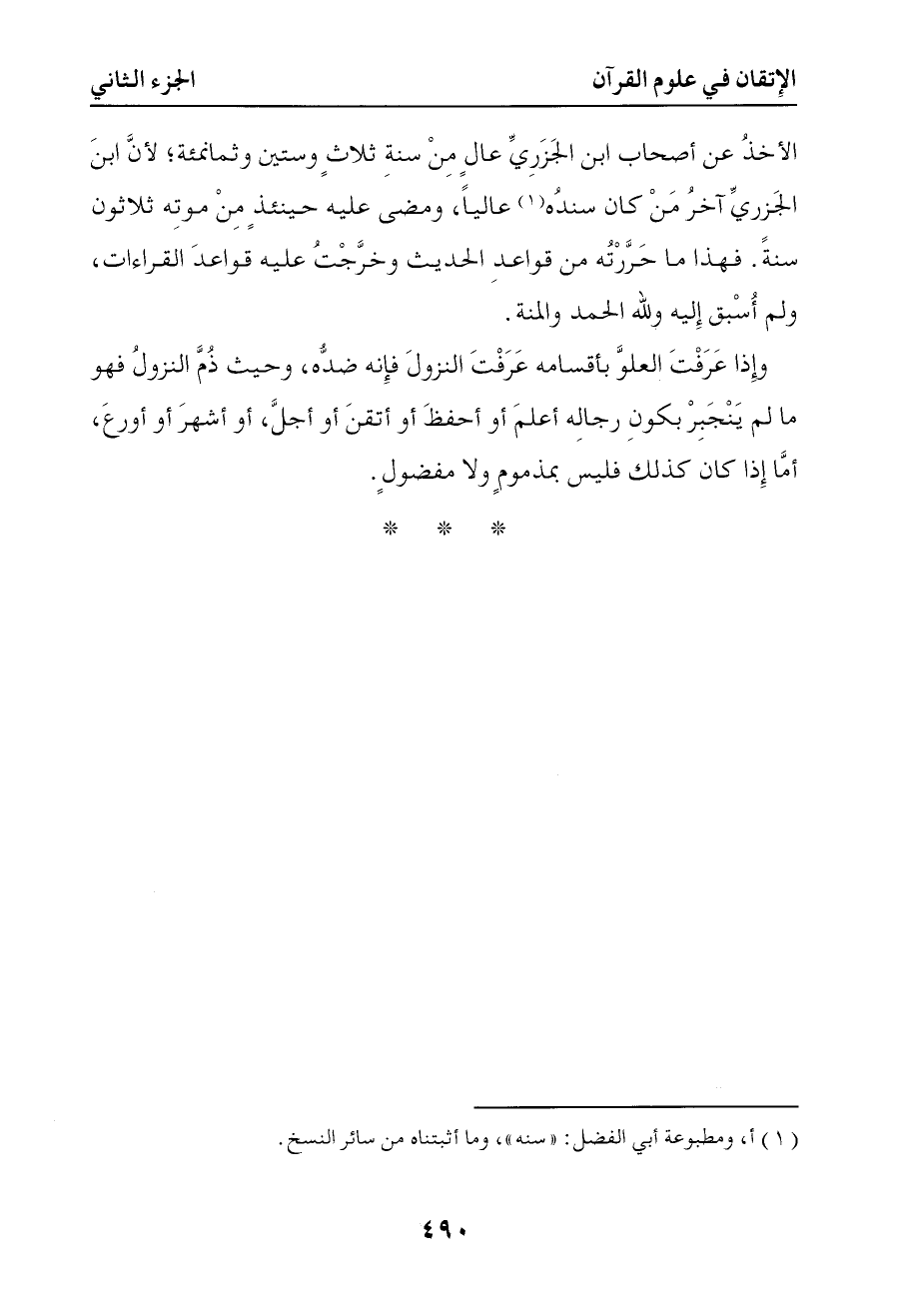 1021 وإذا عرفت العلو بأقسامه عرفت النزول فإنه ضده وحيث ذم النزول فهو ما لم ينجبر بكون رجاله أعلم وأحفظ وأتقن أو أجل أو أشهر أو أورع أما إذا كان كذلك فليس بمذموم ولا مفضول
