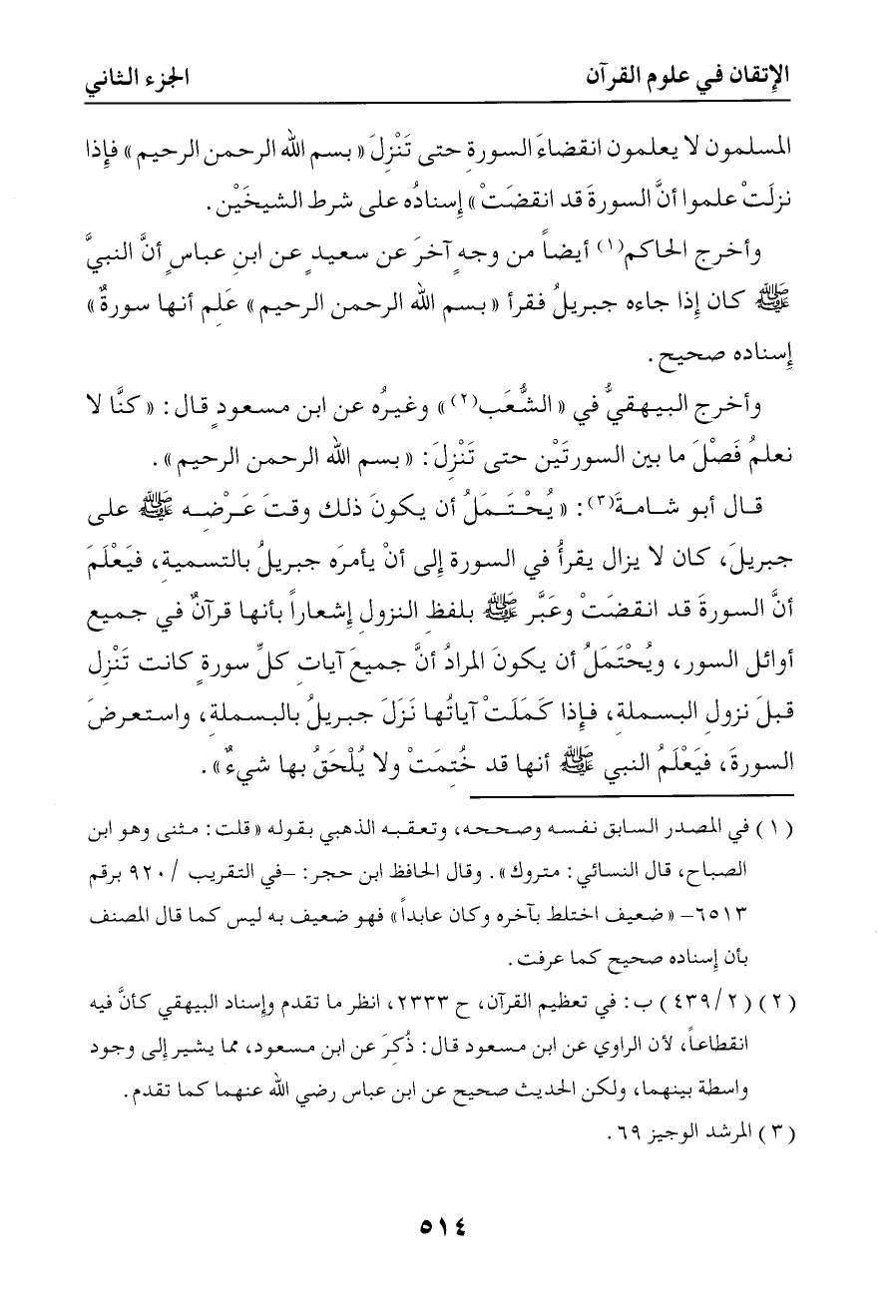 1069 وأخرج البيهقي في الشعب وغيره عن ابن مسعود قال كنا لا نعلم فصلا بين السورتين حتى تنزل { بسم الله الرحمن الرحيم }