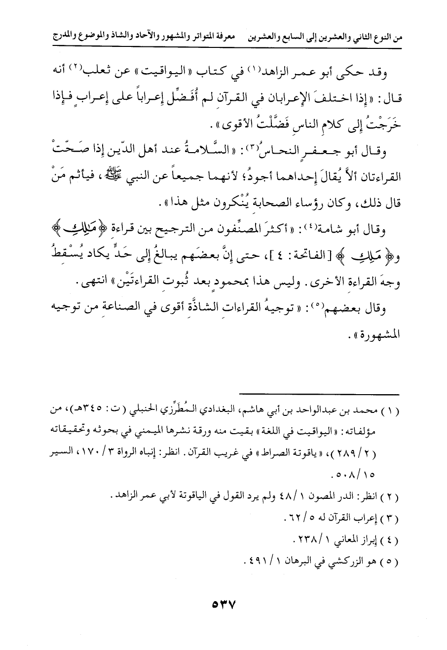 1115 وقال أبو شامة أكثر المصنفون من الترجيح بين قراءة مالك وملك حتى إن بعضهم يبالغ إلى حد يكاد يسقط وجه القراءة الأخرى وليس هذا بمحمود بعد ثبوت القراءتين انتهى