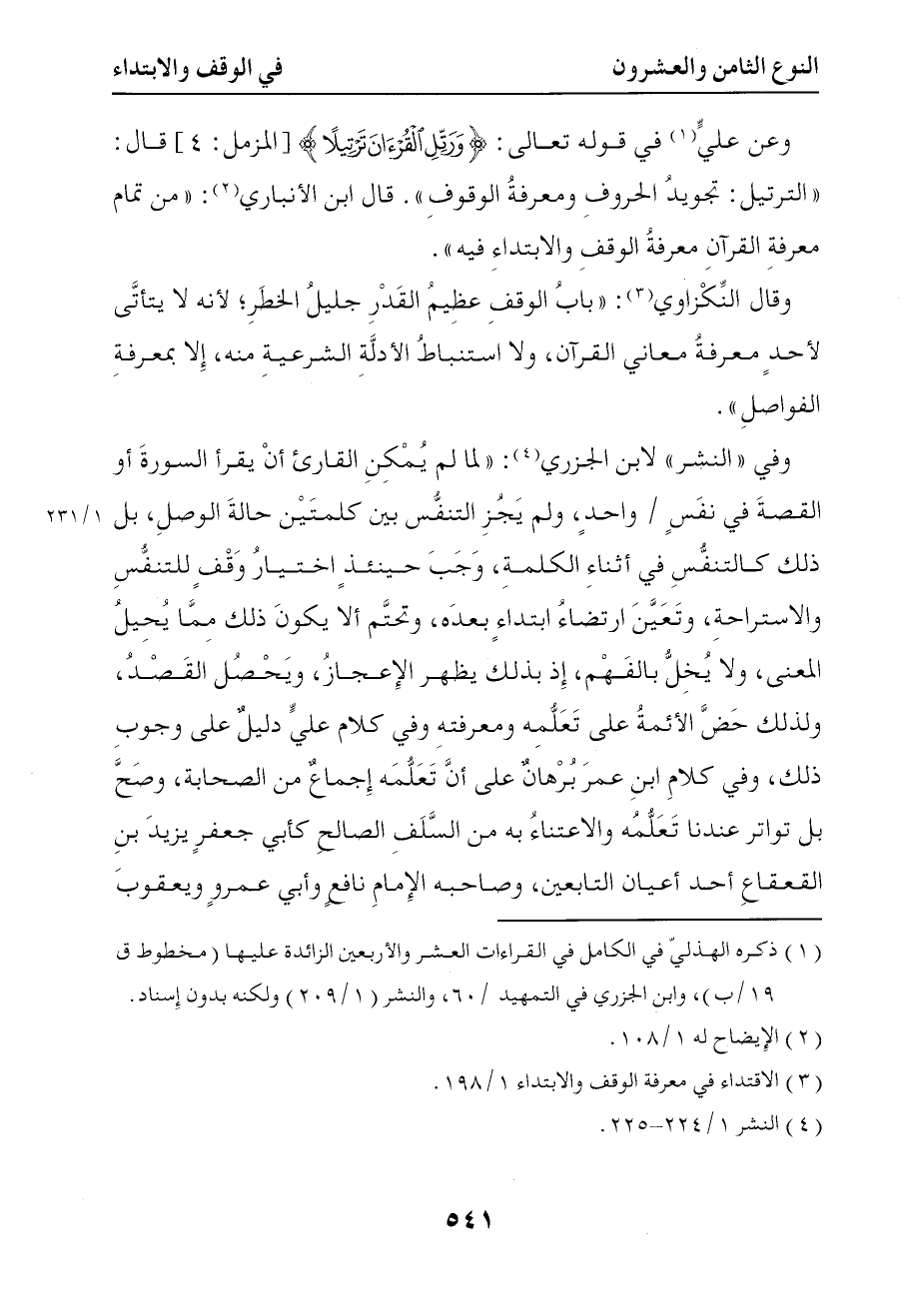 1123 قال ابن الأنباري من تمام معرفة القرآن معرفة الوقف والابتداء فيه