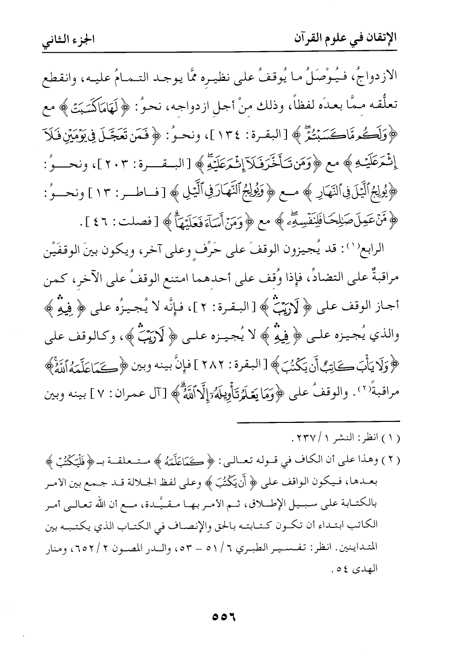 1140 قد يجيزون الوقف على حرف ويجيز آخرون الوقف على آخر ويكون بين الوقفين مراقبة على التضاد فإذا وقف على أحدهما امتنع الوقف على الآخر كمن أجاز الوقف على { لا ريب } فإنه لا يجيزه على { فيه } والذي يجيزه على { فيه } لا يجيزه على { لا ريب }