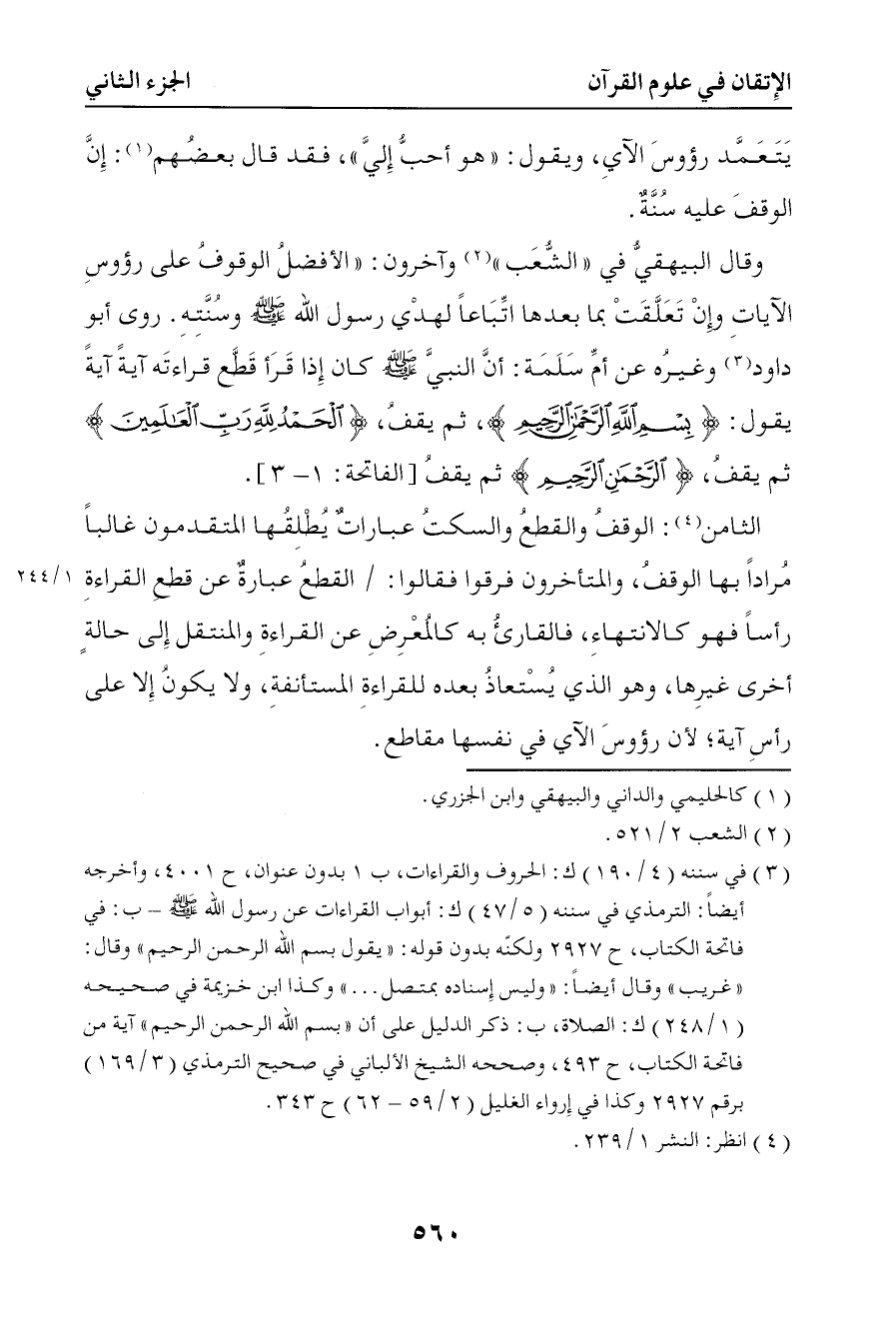 1146 وقال البيهقي في الشعب وآخرون الأفضل الوقف على رؤوس الآيات وإن تعلقت بما بعدها إتباعا لهدى رسول الله صلى الله عليه وسلم وسنته