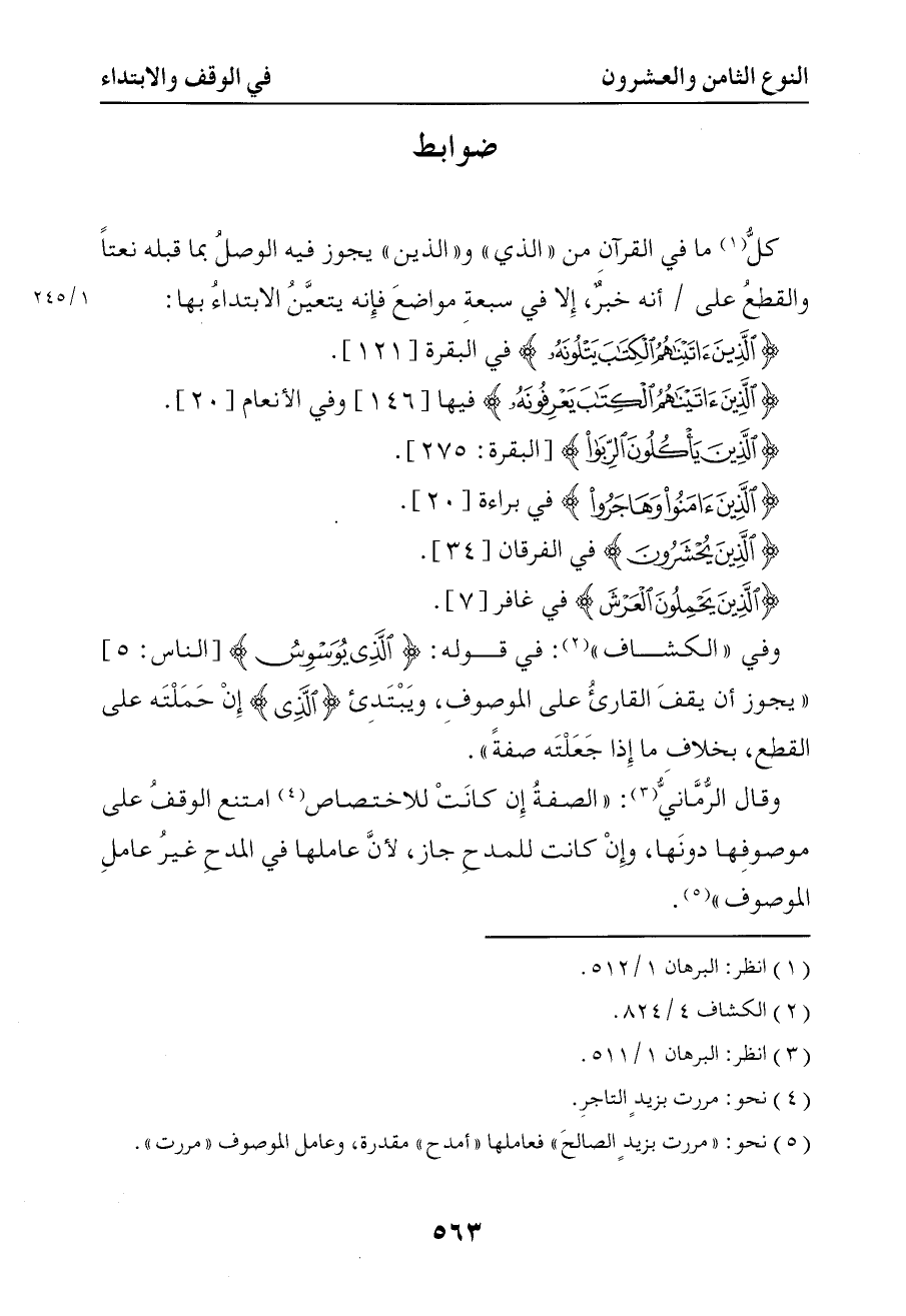 1150 كل ما في القرآن من الذي والذين يجوز فيه الوصل بما قبله نعتا والقطع على أنه خبر إلا في سبعة مواضع فإنه يتعين الابتداء بها