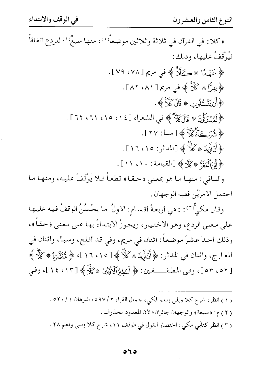 1156 كلا في القرآن في ثلاثة وثلاثين موضعا منها سبعة للردع إتفاقا فيوقف عليها وذلك