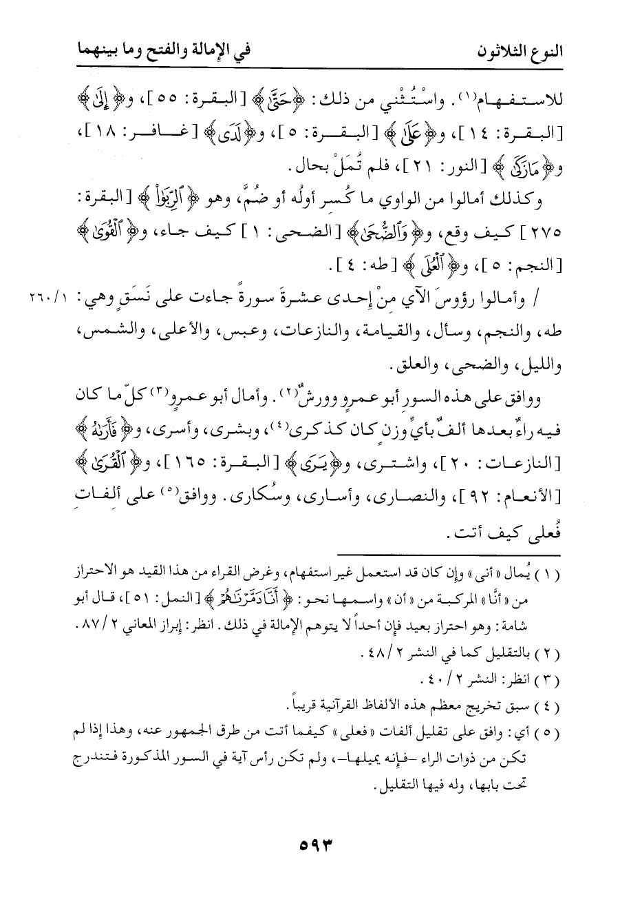 1206 وأمالوا رؤوس الآي من إحدى عشرة سورة جاءت على نسق وهي طه والنجم وسأل والقيامة والنازعات وعبس والأعلى والشمس والليل والضحى والعلق ووافق على هذه السور أبو عمرو وورش