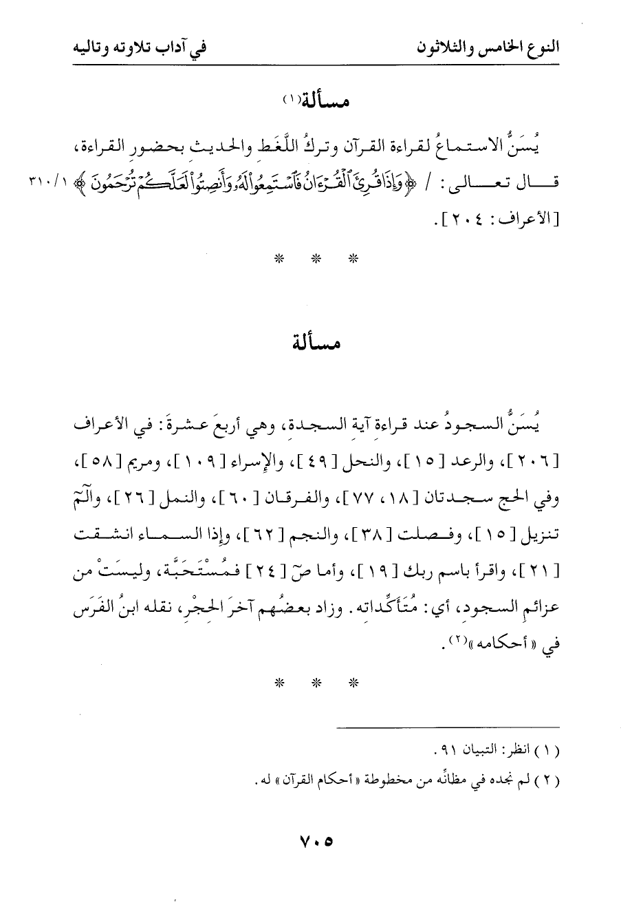 1445 يسن الاستماع لقراءة القرآن وترك اللغط والحديث بحضور القراءة قال تعالى { وإذا قرئ القرآن فاستمعوا له وأنصتوا لعلكم ترحمون } 25 - مسألة