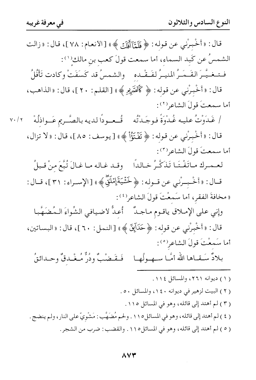 2320 قال أخبرني عن قوله تعالى { فلما أفلت } قال زالت الشمس عن كبد السماء قال وهل تعرف العرب ذلك قال نعم أما سمعت قول كعب بن مالك