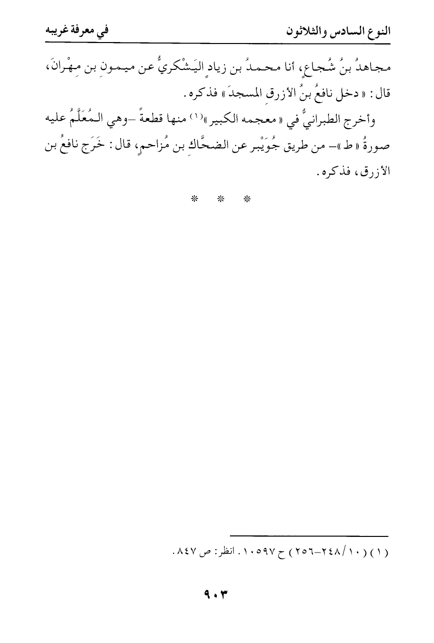 مجاهد بن شجاع أنبأنا محمد بن زياد اليشكري عن ميمون بن مهران قال دخل نافع بن الأزرق المسجد فذكره