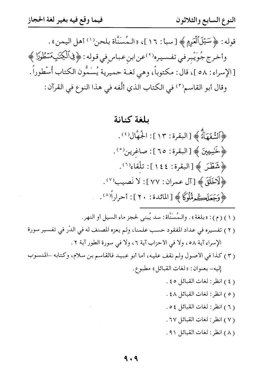 2465 وقال أبو القاسم في الكتاب الذي ألفه في هذا النوع في القرآن 1 - بلغة كنانة