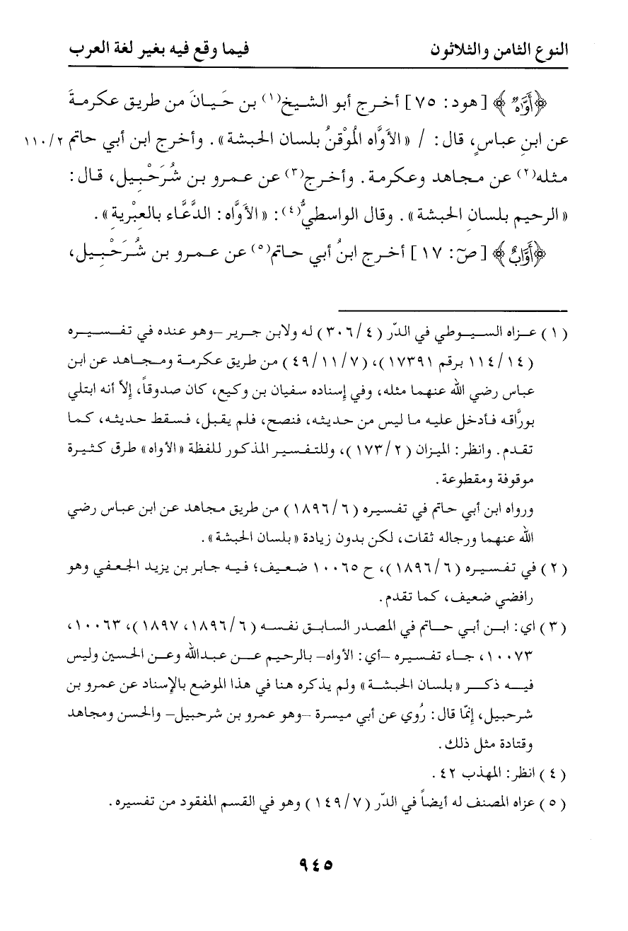 2674 أواه أخرج أبو الشيخ بن حبان من طريق عكرمة عن ابن عباس قال الأواه الموقن بلسان الحبشة