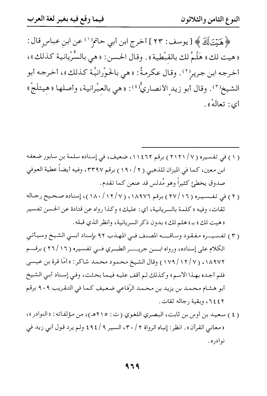 2808 هيت لك أخرج ابن أبي حاتم عن ابن عباس قال هيت لك هلم لك بالقبطية