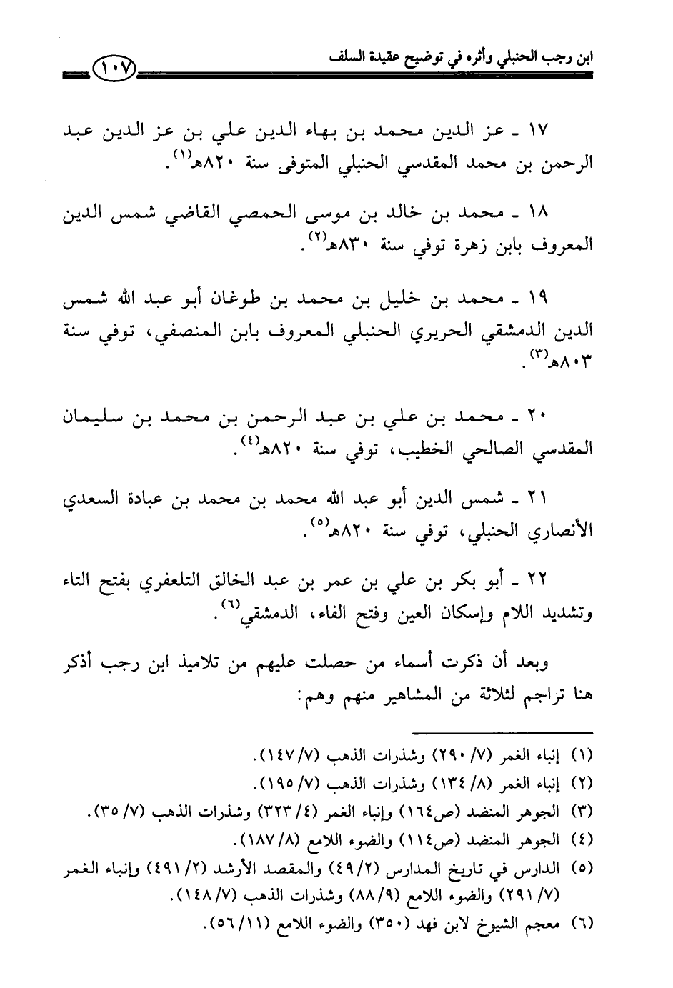 (¬٥) الدارس في تاريخ المدارس (٢/ ٤٩) والمقصد الأرشد (٢/ ٤٩١) وإنباء الغمر (٧/ ٢٩١) والضوء اللامع (٩/ ٨٨) وشذرات الذهب (٧/ ١٤٨).