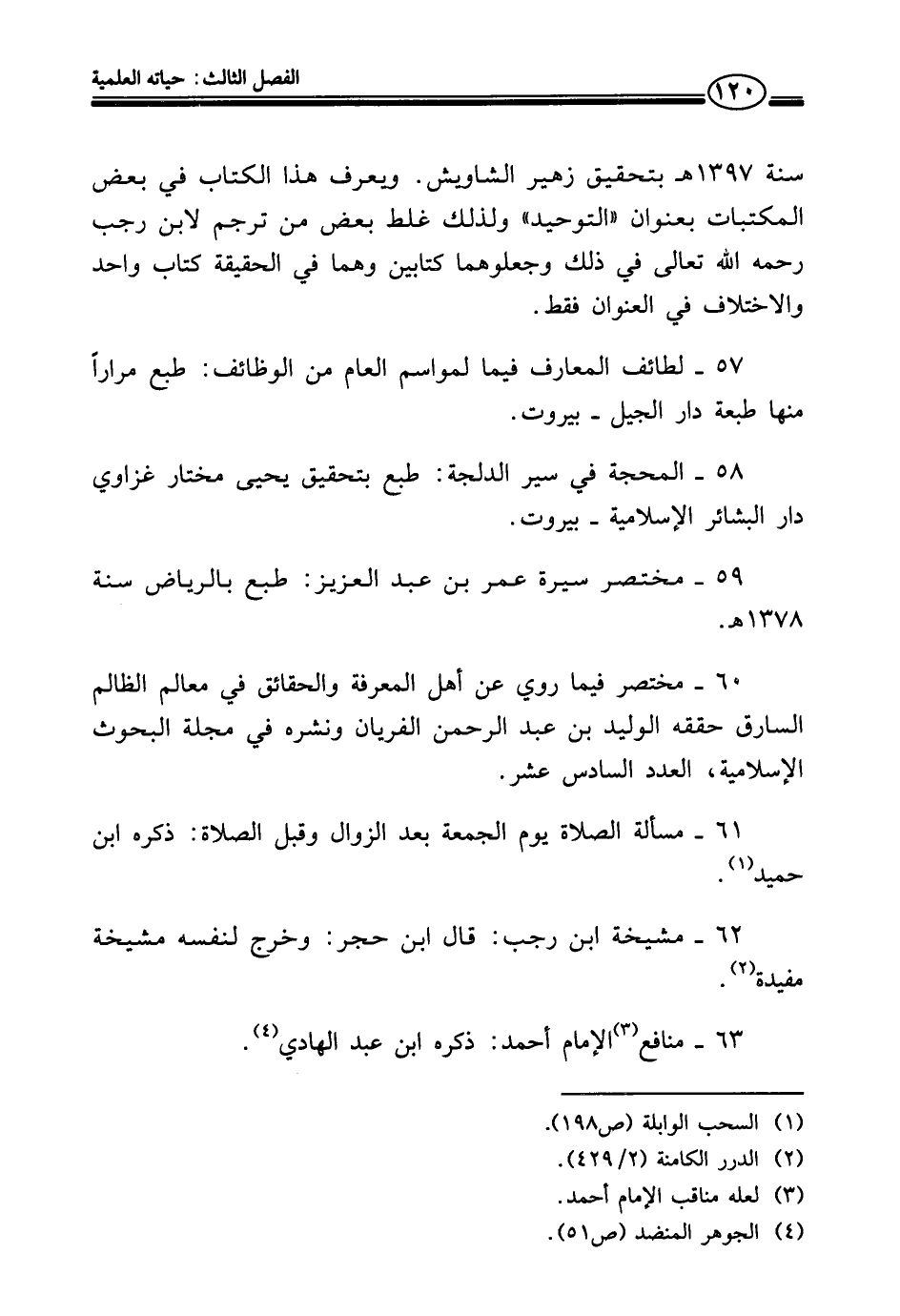 ٥٧ - لطائف المعارف فيما لمواسم العام من الوظائف: طبع مرارًا منها طبعة دار الجيل - بيروت.