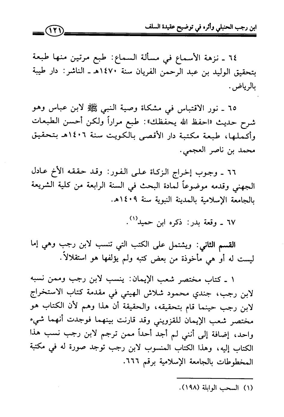 القسم الثاني: ويشتمل على الكتب التي تنسب لابن رجب وهي إما ليست له أو هي مأخوذة من بعض كتبه ولم يؤلفها هو استقلالًا.
