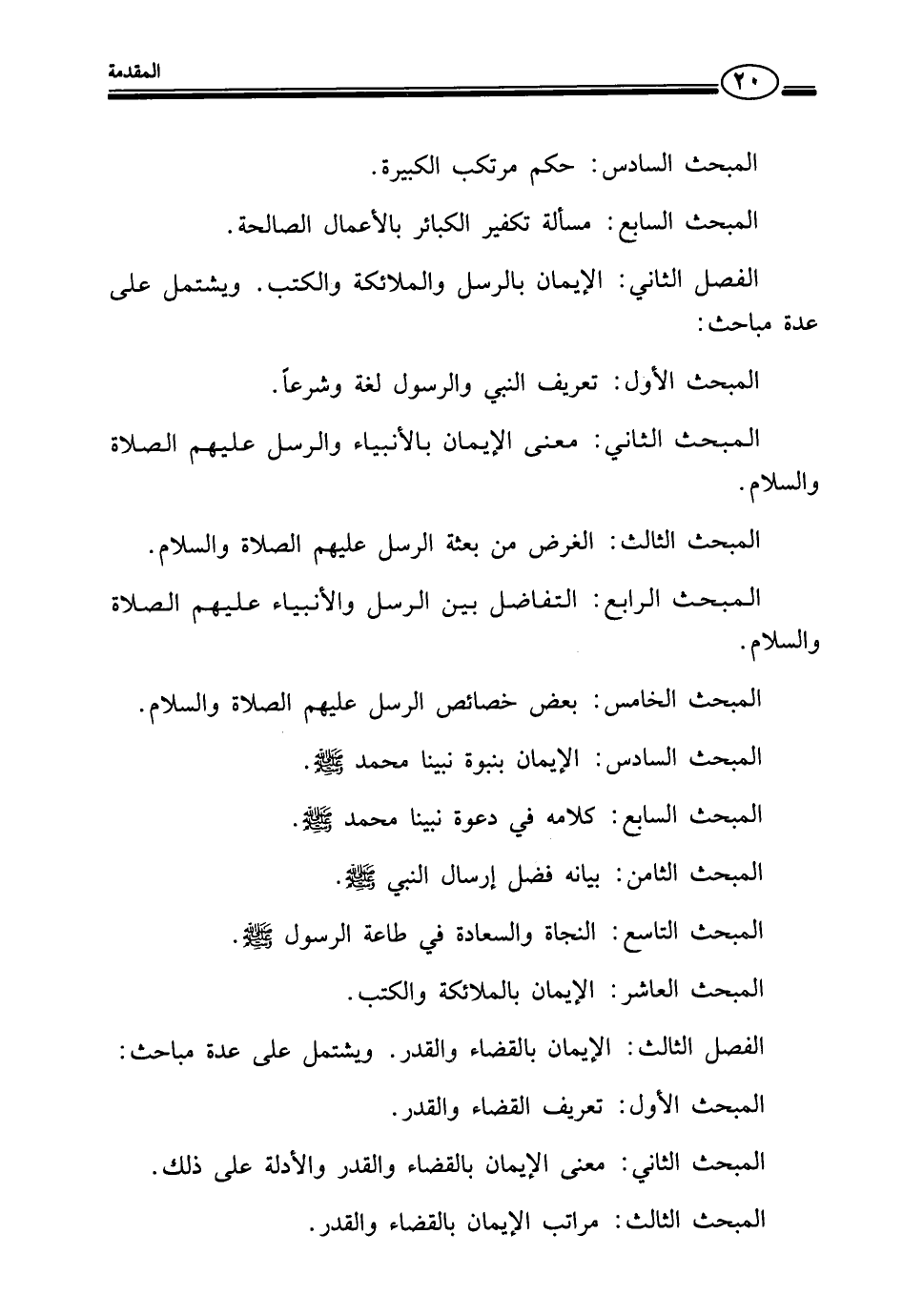 الفصل الثاني: الإيمان بالرسل والملائكة والكتب. ويشتمل على عدة مباحث: