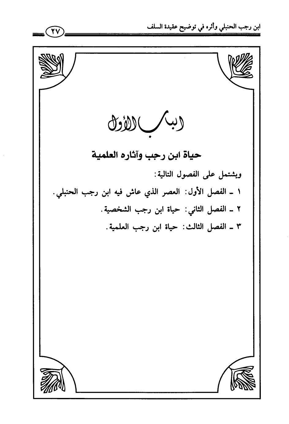 الباب الأول حياة ابن رجب وآثاره العلمية