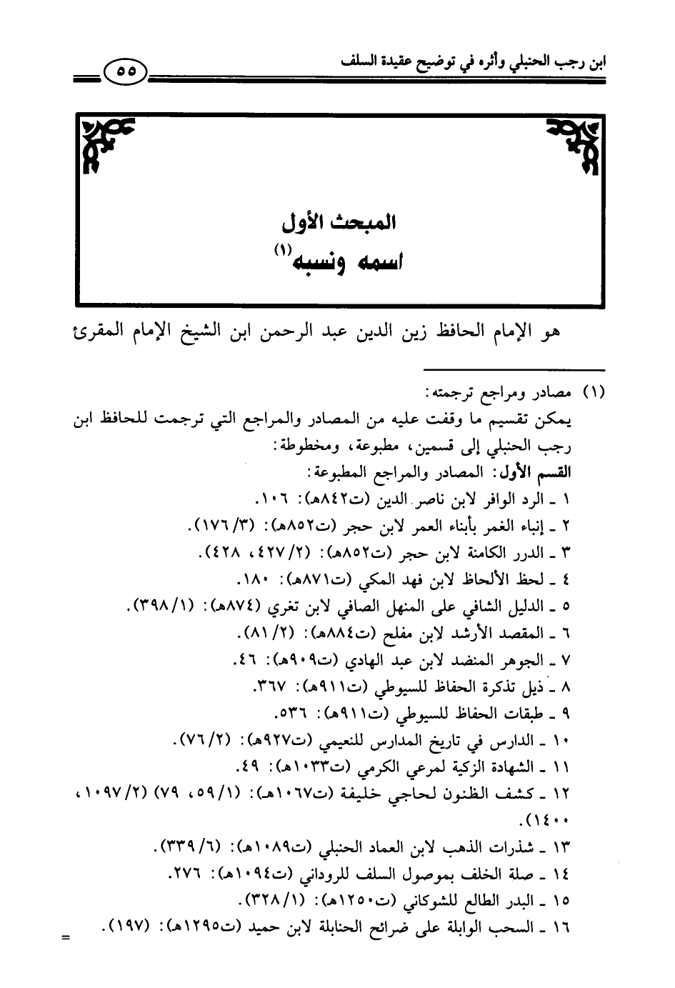 كتاب ابن رجب الحنبلي وأثره في توضيح عقيدة السلف