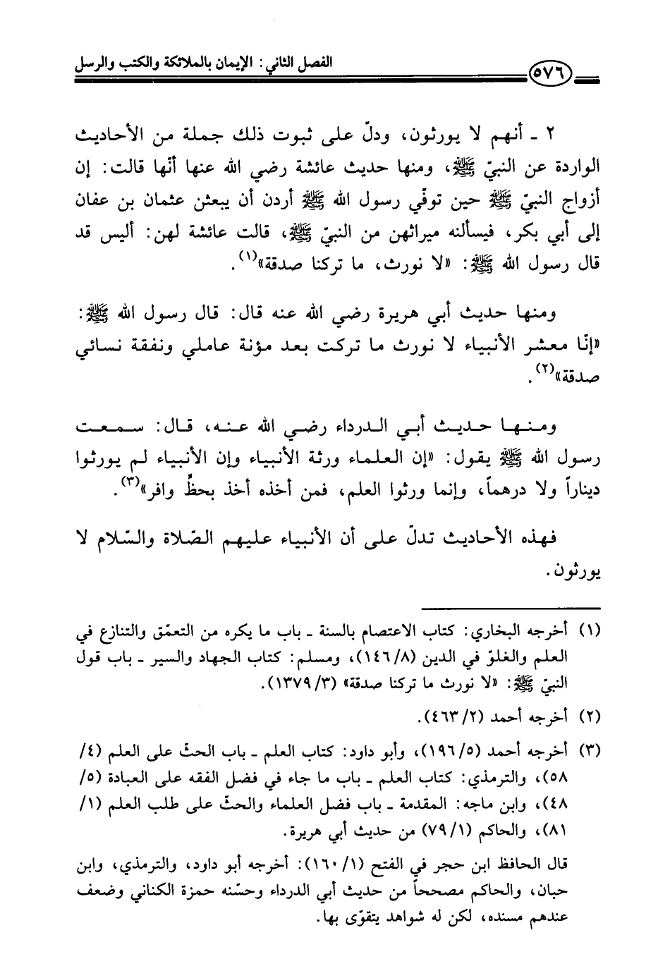 (¬١) أخرجه البخاري: كتاب الاعتصام بالسنة - باب ما يكره من التعمّق والتنازع في العلم والغلوّ في الدين (٨/ ١٤٦)، ومسلم: كتاب الجهاد والسير - باب قول النبيّ - صلى الله عليه وسلم -: "لا نورث ما تركنا صدقة" (٣/ ١٣٧٩).