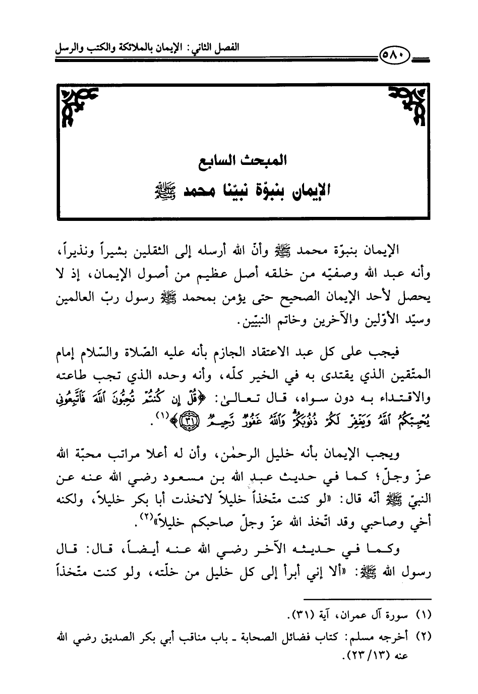 المبحث السابع الإيمان بنبوّة نبيّنا محمد - صلى الله عليه وسلم -