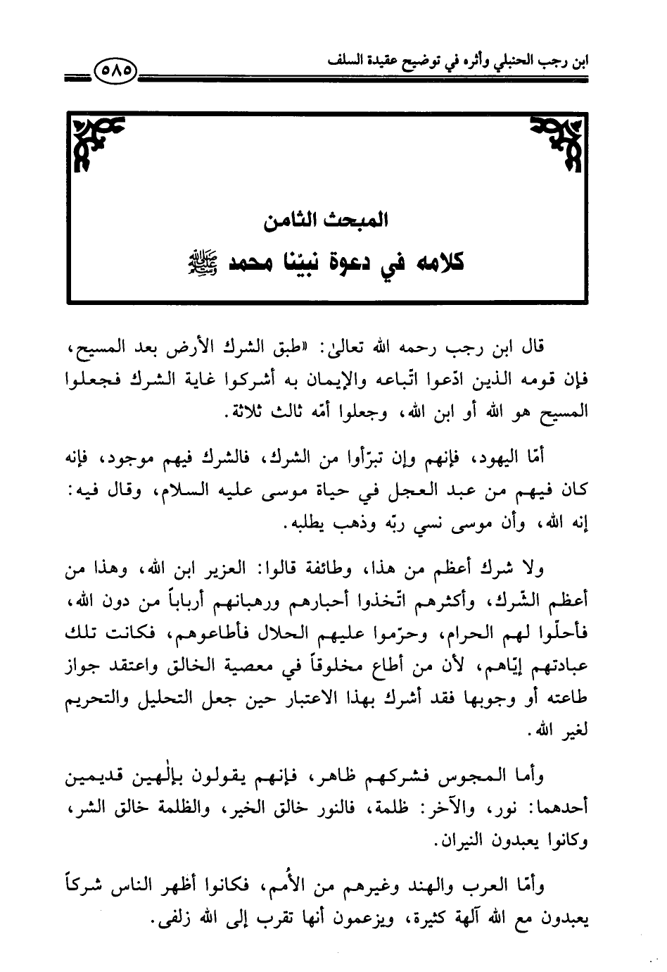 المبحث الثامن كلامه في دعوة نبيّنا محمد - صلى الله عليه وسلم -