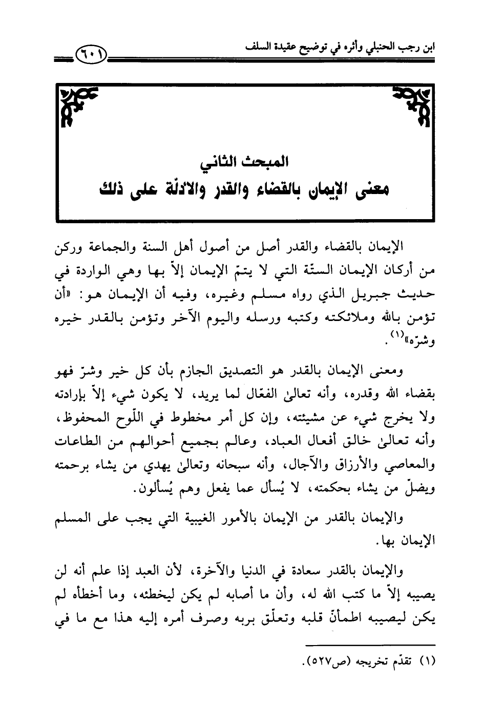 المبحث الثاني معنى الإيمان بالقضاء والقدر والأدلّة على ذلك