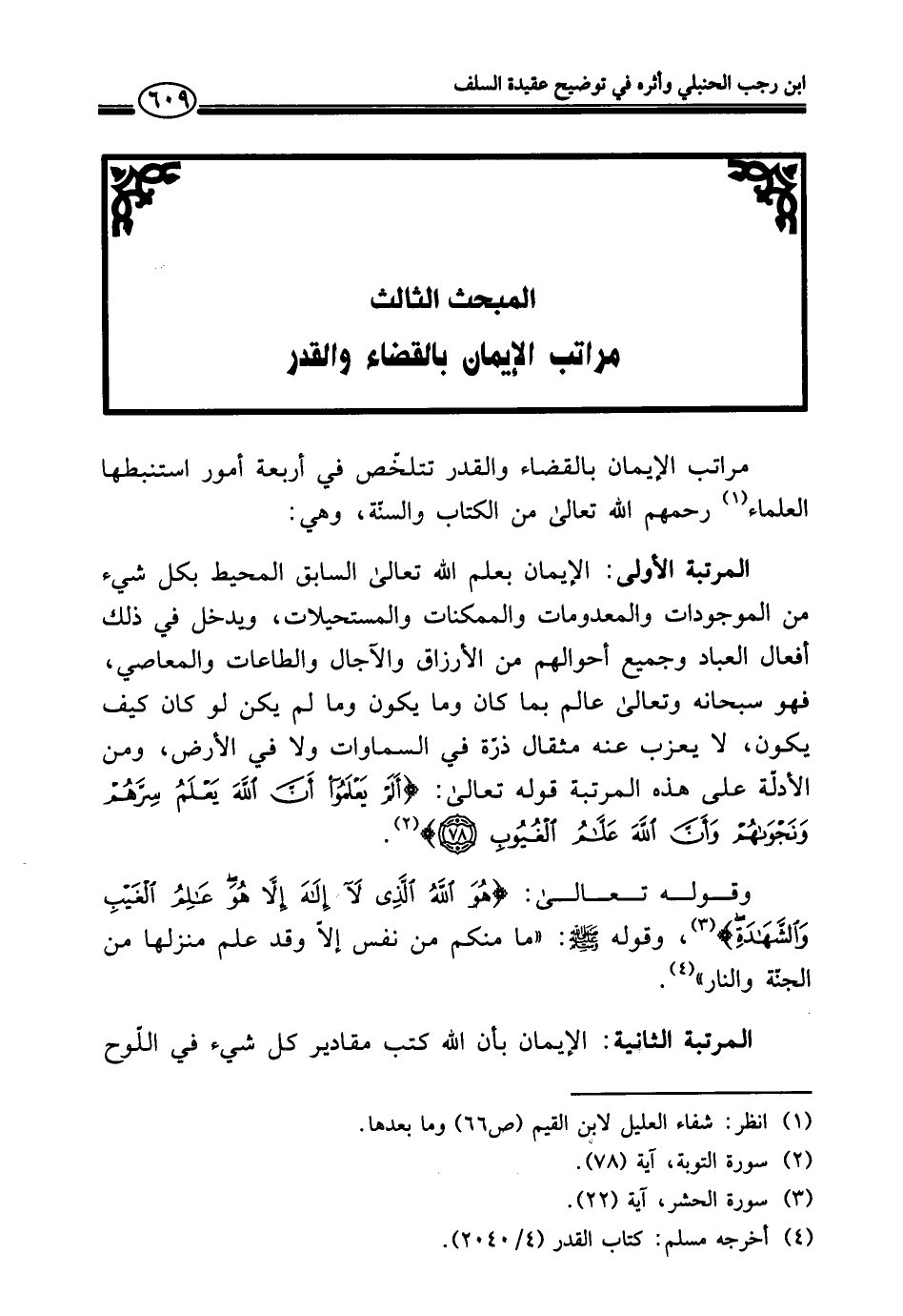 المبحث الثالث مراتب الإيمان بالقضاء والقدر