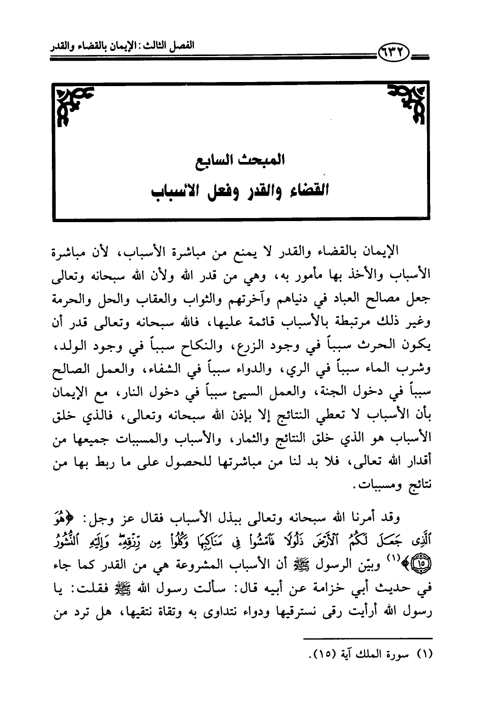 المبحث السابع القضاء والقدر وفعل الأسباب