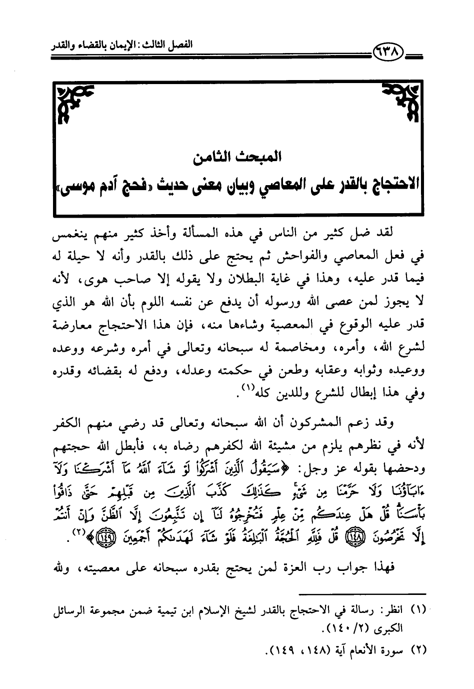 المبحث الثامن الاحتجاج بالقدر على المعاصي وبيان معنى حديث "فحج آدم موسى"