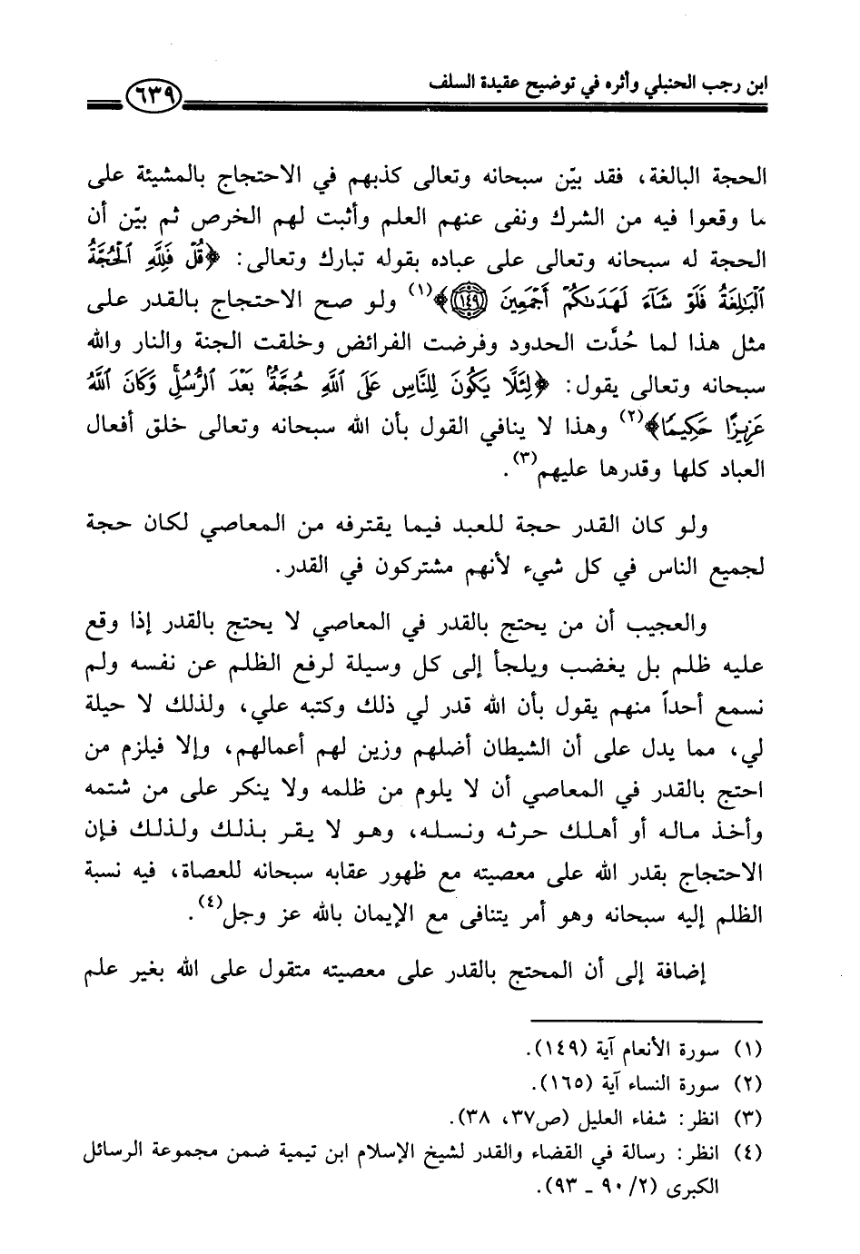 (¬٤) انظر: رسالة في القضاء والقدر لشيخ الإسلام ابن تيمية ضمن مجموعة الرسائل الكبرى (٢/ ٩٠ - ٩٣).