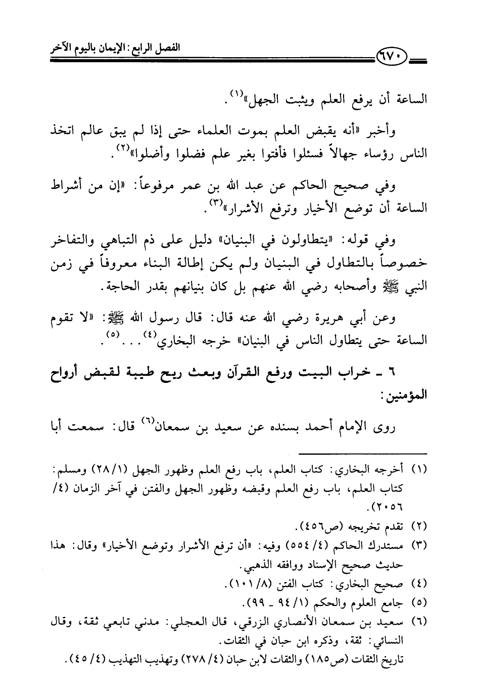 (¬١) أخرجه البخاري: كتاب العلم، باب رفع العلم وظهور الجهل (١/ ٢٨) ومسلم: كتاب العلم، باب رفع العلم وقبضه وظهور الجهل والفتن في آخر الزمان (٤/ ٢٠٥٦).