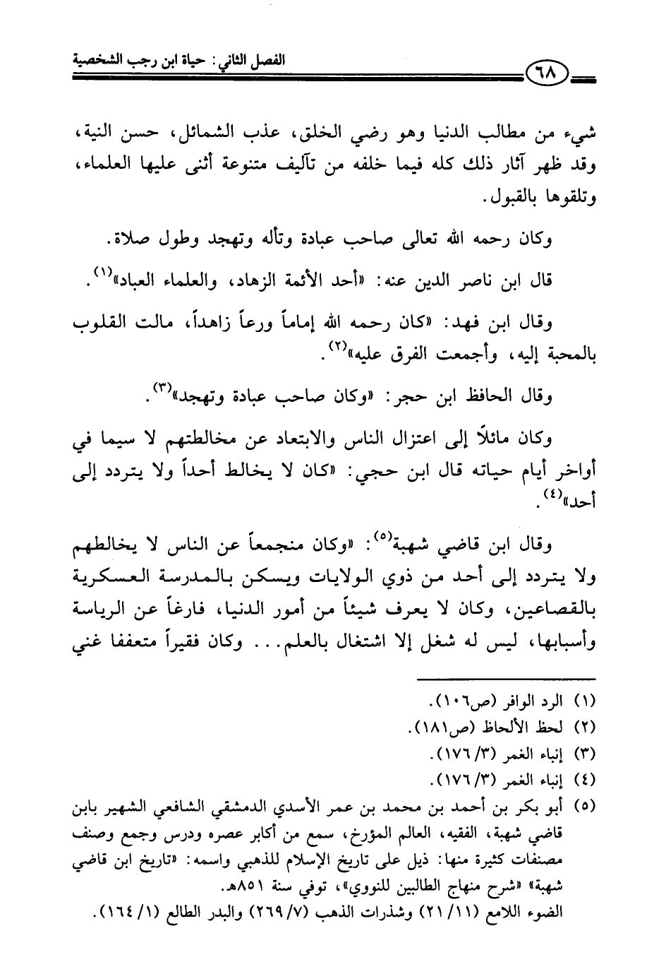 شيء من مطالب الدنيا وهو رضي الخلق، عذب الشمائل، حسن النية، وقد ظهر آثار ذلك كله فيما خلفه من تآليف متنوعة أثنى عليها العلماء، وتلقوها بالقبول.