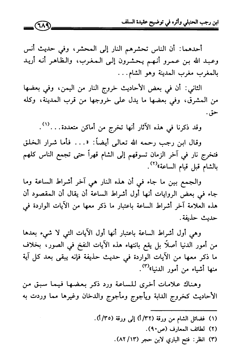 وقال ابن رجب رحمه الله تعالى أيضًا: " ... فأما شرار الخلق فتخرج نار في آخر الزمان تسوقهم إلى الشام قهرًا حتى تجمع الناس كلهم بالشام قبل قيام الساعة" (¬٢).