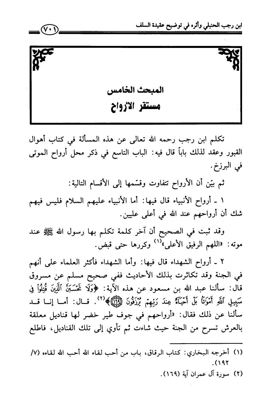 المبحث الخامس مستقر الأرواح
