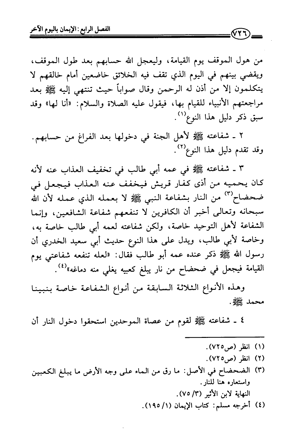 ٤ - شفاعته - صلى الله عليه وسلم - لقوم من عصاة الموحدين استحقوا دخول النار أن