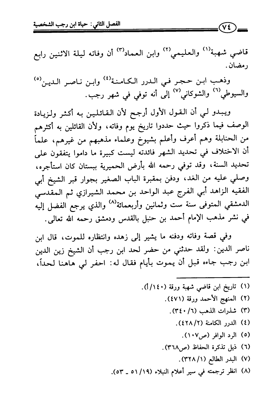 وذهب ابن حجر في الدرر الكامنة (¬٤) وابن ناصر الدين (¬٥) والسيوطي (¬٦) والشوكاني (¬٧) إلى أنه توفي في شهر رجب.