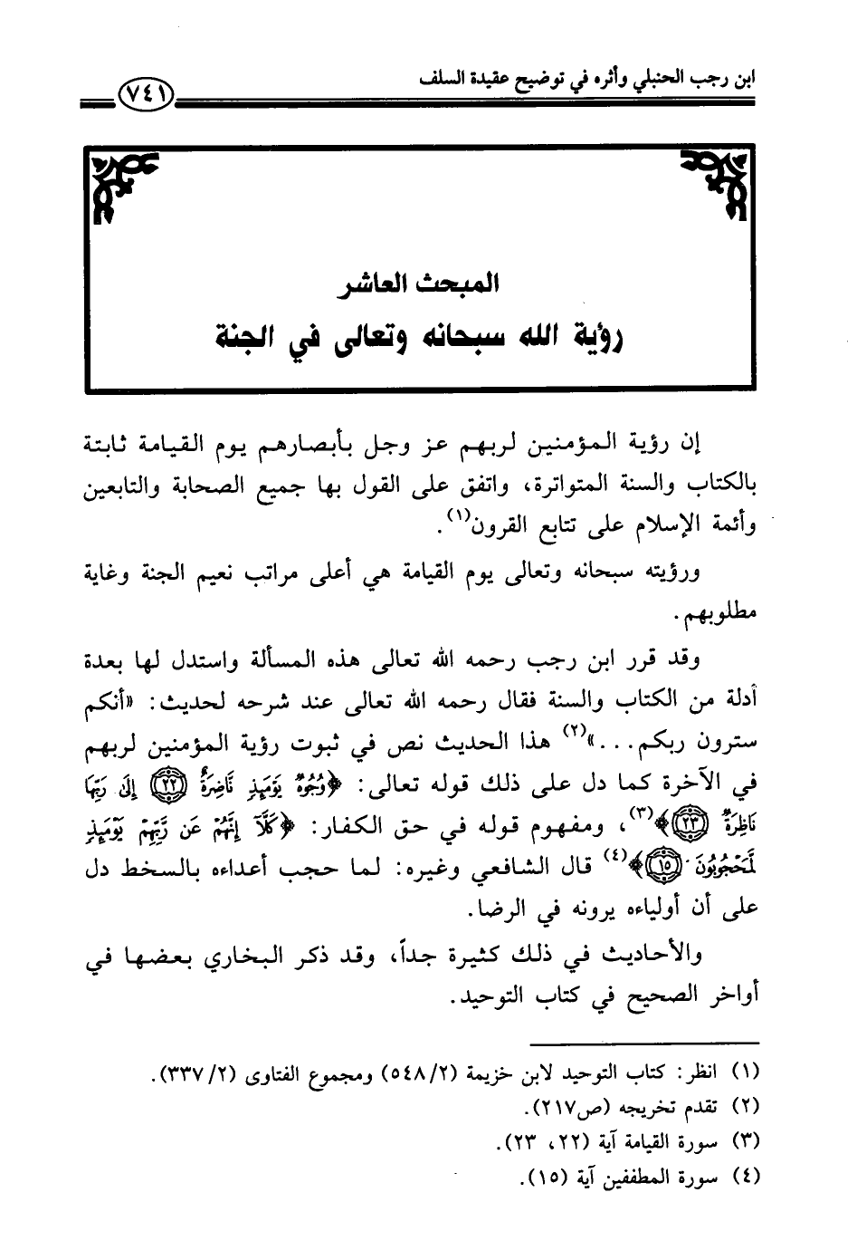المبحث العاشر رؤية الله سبحانه وتعالى في الجنة