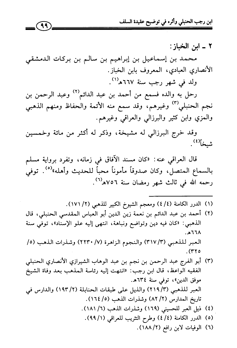 (¬٢) أحمد بن عبد الدائم بن نعمة زين الدين أبو العباس المقدسي الحنبلي، قال الذهبي: "كان فيه دين وتواضع ونباهة، انتهى إليه علو الإسناد"، توفي سنة ٦٦٨ هـ.