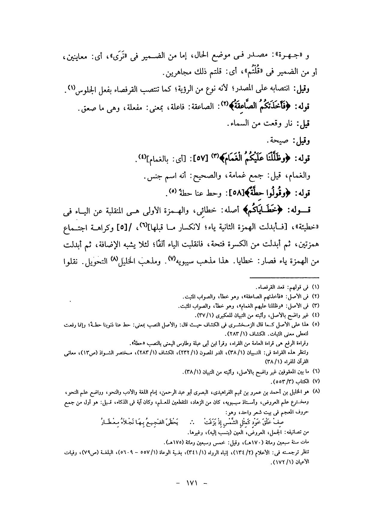 قوله: (خَطَايَكُم " أصله: خطائِى، والهمزة الأولى هي المنقلبة عن الياء فى