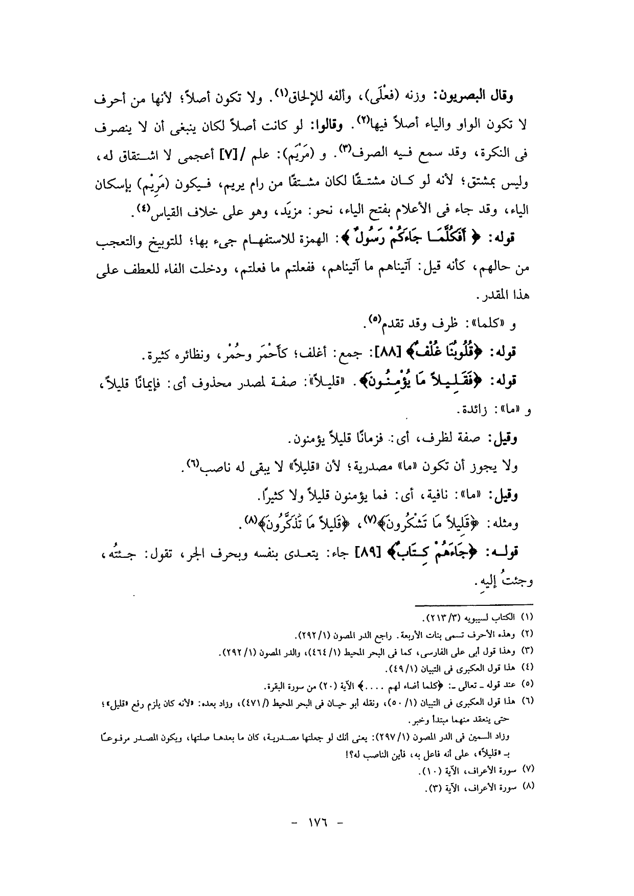 ولا يجوز أن تكون " ما " مصدرية؛ لأن " قليلاً " لا يبقى له ناصب.