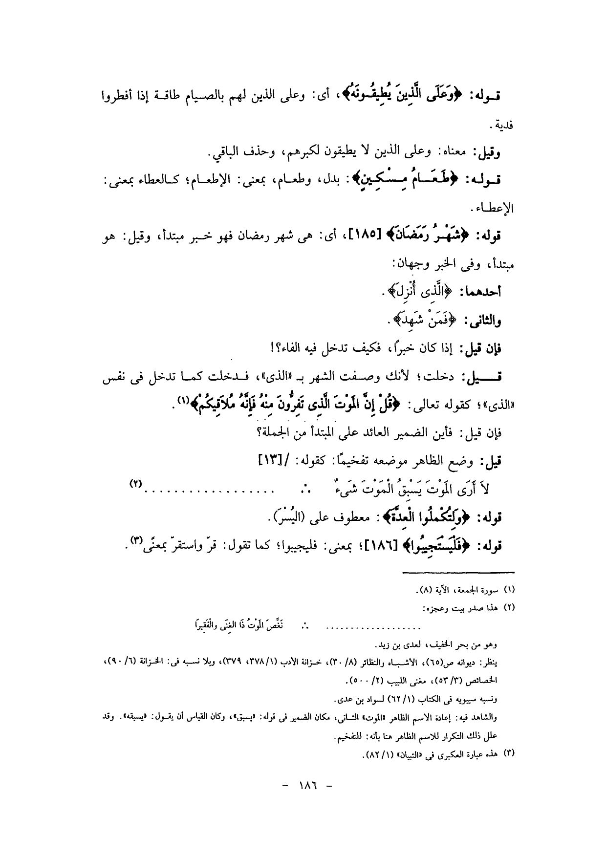 قوله: (وَعَلَى الَّذِينَ يُطِيقُونَهُ ".