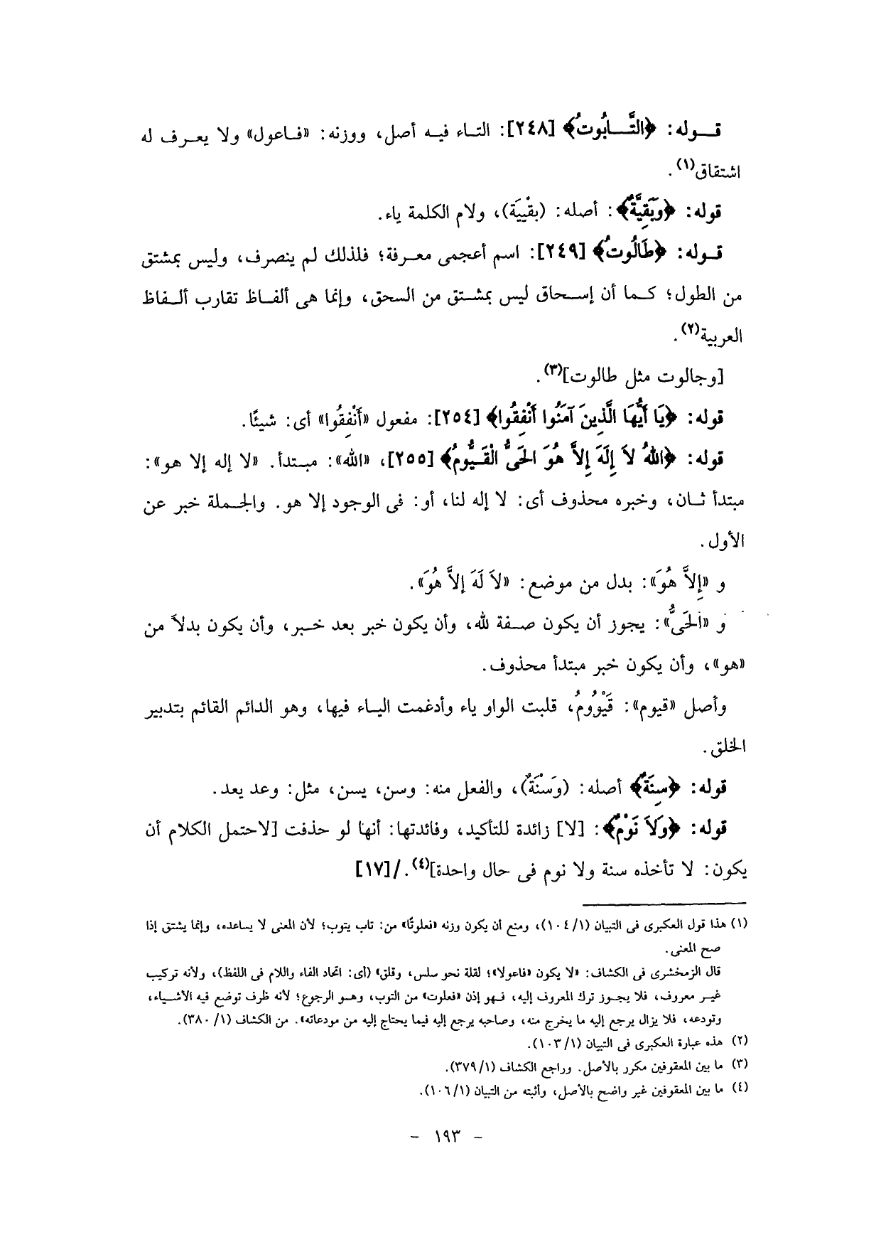 - و (الحَىُّ) : يجوز أن يكون صفة لله، وأن يكون خبر بعد خبر، وأن يكون بدلا من " هولا، وأن يكون خبر مبتدأ محذوف.