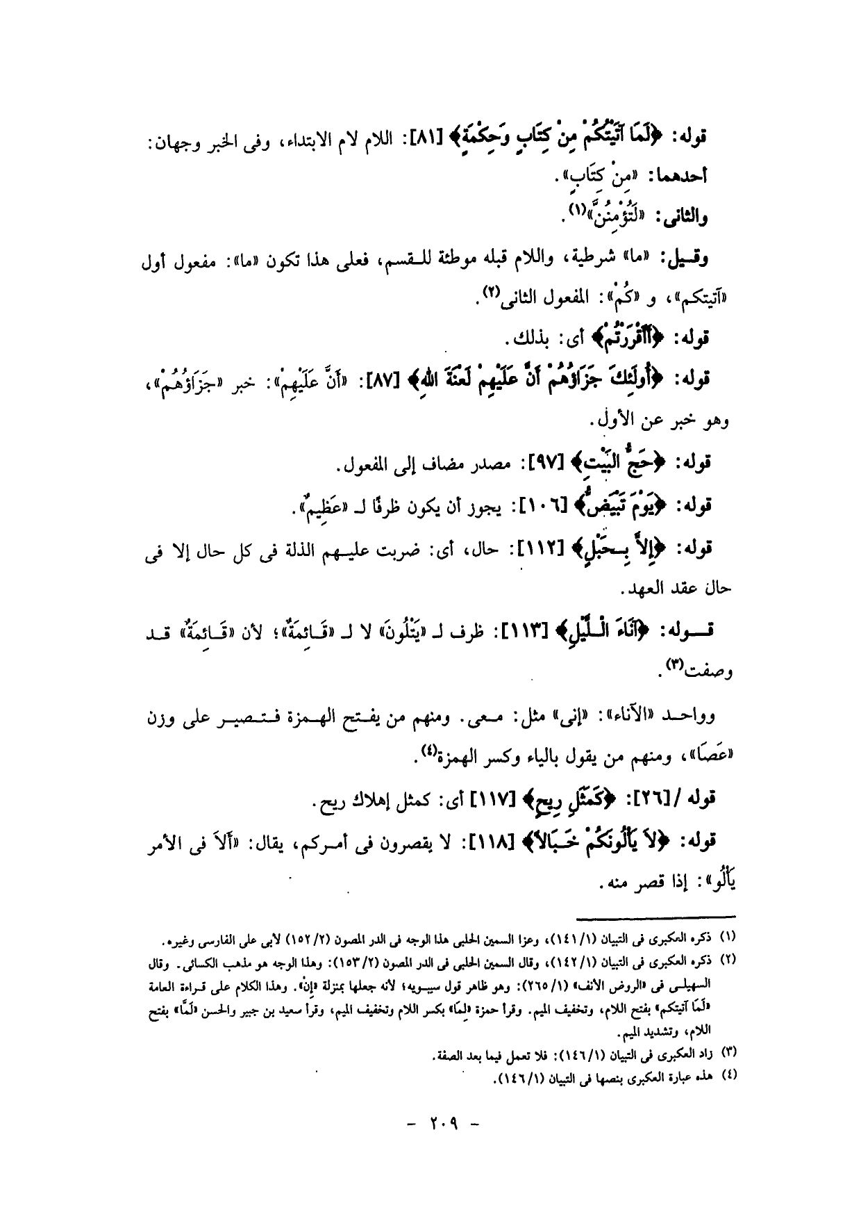 قوله: (آنَاءَ اللَّيْلِ) : ظرف لـ (يَتْلُونَ) لا لـ (قَائِمَةٌ) ؛ لأن (قَائِمَةٌ) قد وصفت.