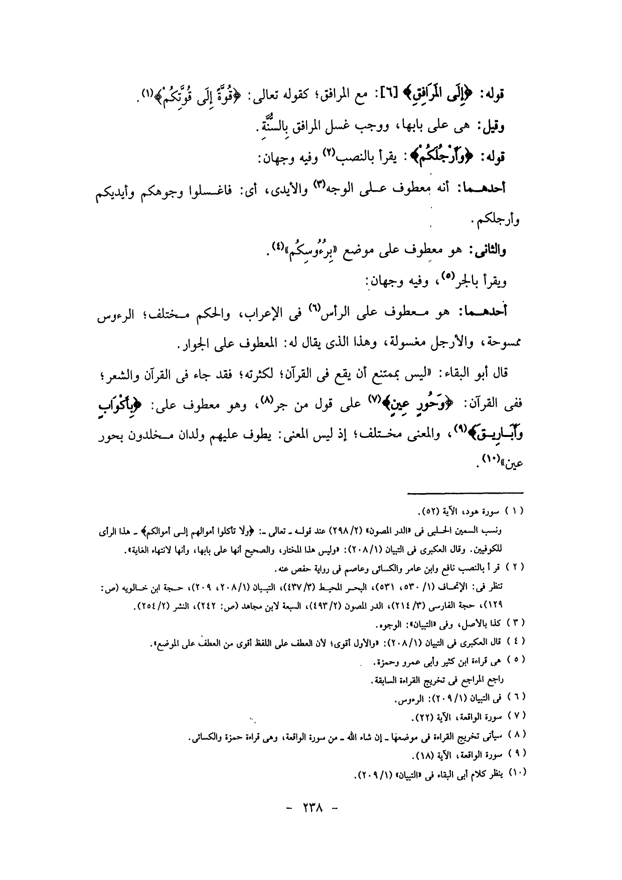 قوله: (وَأَرْجُلَكُمْ) : يقرأ بالنصب وفيه وجهان: