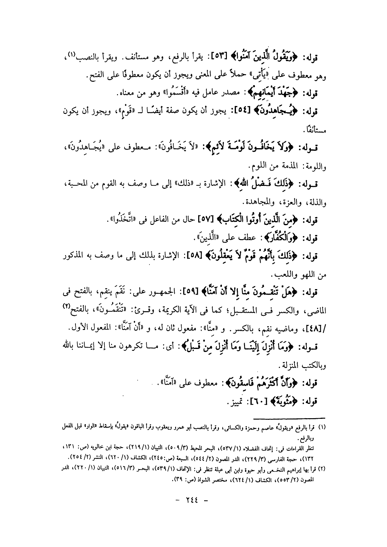 ْقوله: (يُجَاهِدُونَ) : يجوز أن يكون صفة أيضا لـ " قَوْمٍ "، ويجوز أن يكون