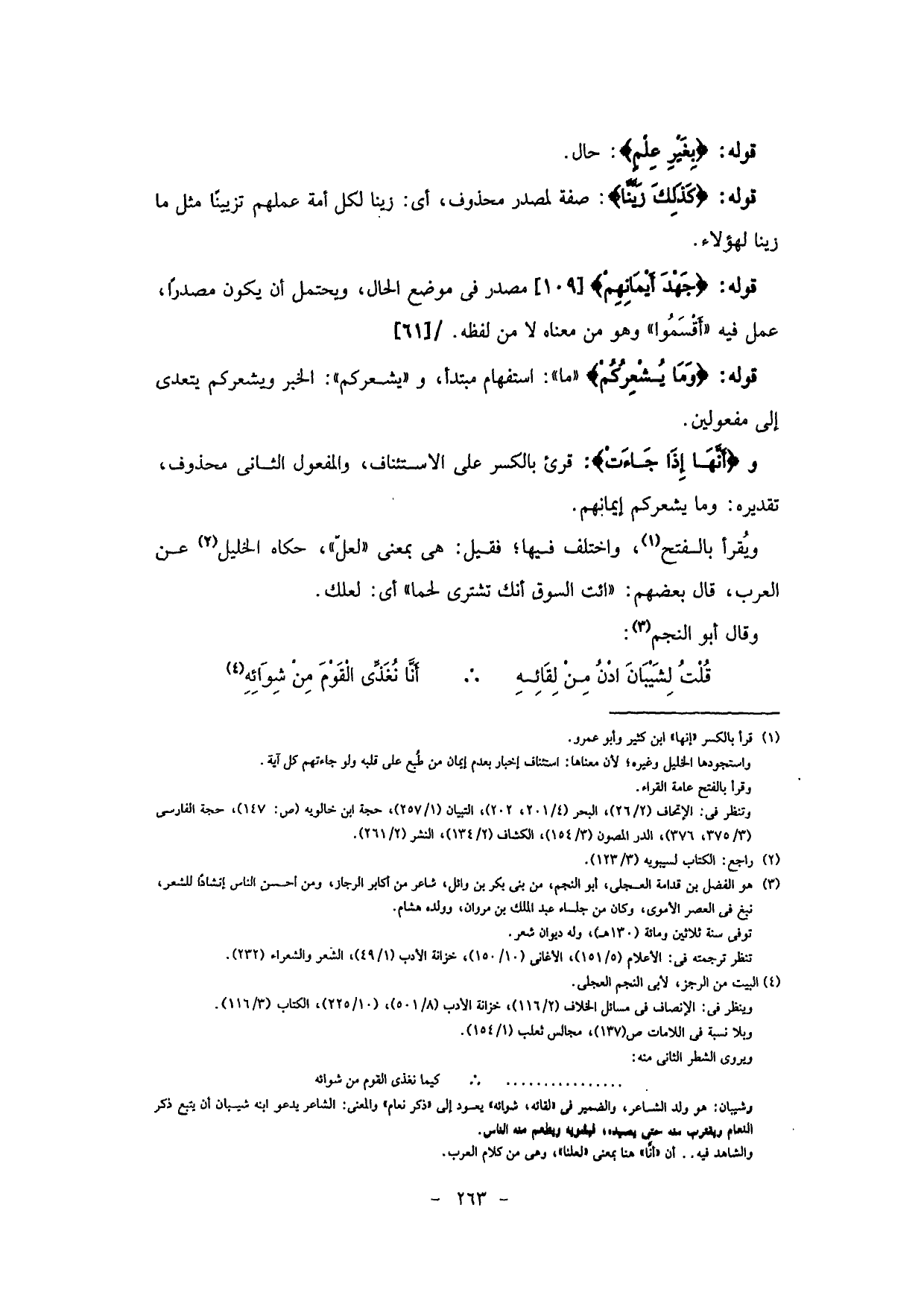 و (أَنَّهَا إِذَا جَاءَتْ) : قرئ بالكسر على الاستئناف، والمفعول الثاني محذوف، تقديره: وما يشعركم إيمانهم.